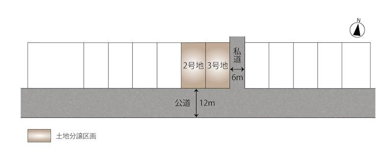 建ぺい率・容積率 | 60%・200% | 私道負担・道路 | 共有持分370㎡×(1/10)、南12m幅、東6m幅 | ||