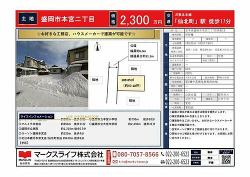 NEW売地岩手県盛岡市本宮2丁目の売地の詳細情報