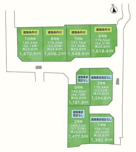 | 備考 | 上水道・下水道・都市ガス・電気は引き渡しの時に設備とします。造成後に実測にて精算となります。・維持費等:自治会費3,600円/年・私道負担:なし / 条件等:更地渡し | ||||