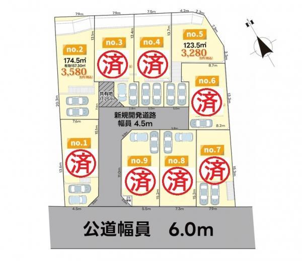 道路幅:4.5m、アスファルト舗装、接道1:一方 私道 南東 幅員4.5m/接道2:一方 私道 南西 幅員4.5m/私道有/私道面積:156.72平米/私道持分:1/8