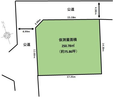 | 接道状況 | 北東 4.9m 公道 接面15.1m北西 4.9m 公道 接面12.6m | ||||