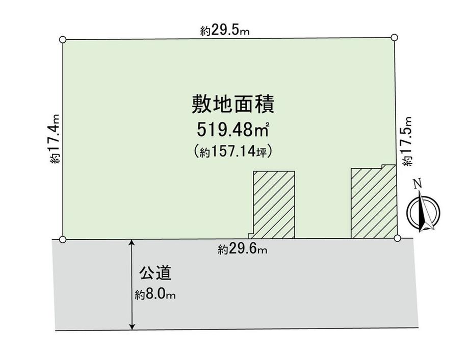 | 建ぺい率・容積率 | 40%・80% | 私道負担・道路 | 無、南西8m幅(接道幅29.6m) | ||