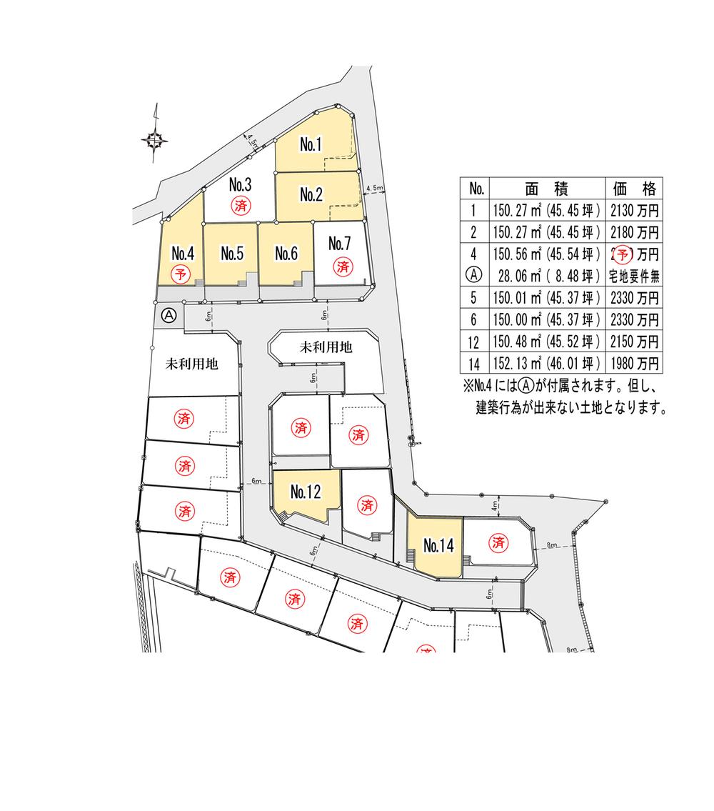 | その他制限事項 | 第一期 ≪建ぺい率:60%・容積率:100%≫ 開発許可番号:指令開業第4-22号・検査済み番号:指令開業第 234号 第二期 ≪建ぺい率:50%・容積率: 80%≫ 開発許可番号:指令開業第6-118号・検査済み番号:指令開業第9号 | ||||