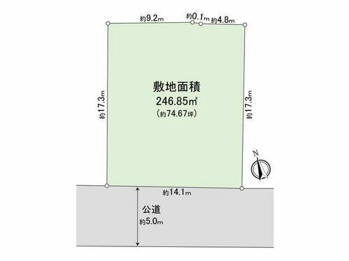 | 接道状況 | 南西 5.0m 公道 接面14.1m | ||||