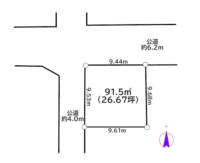 | 建ぺい率・容積率 | 60%・200% | 私道負担・道路 | 無、北6m幅(接道幅10m)、西4m幅(接道幅9.5m) | ||