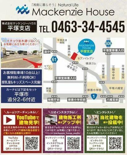 JR東海道本線 「平塚」駅 徒歩14分 湘南新宿ライン(前橋~小田原) 「平塚」駅 徒歩14分 | ||||