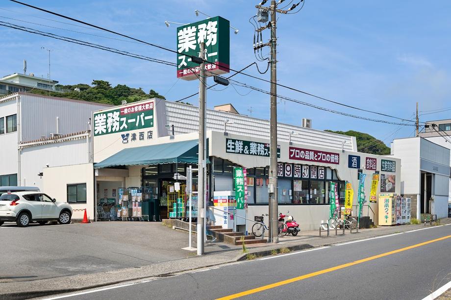 業務スーパー津西店まで800m 営業時間は9:00~21:00です。冷凍食品や調味料をはじめ成果や精肉など、豊富な品ぞろえで、日々のお買い物の心強い味方です。多様な食材を手頃な価格で購入できる店舗です。駐車場も完備しています。