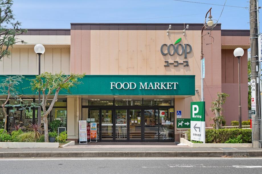 ユーコープ西鎌倉店まで1100m 営業時間は9:30~21:00です。生鮮食品や精肉、鮮魚、惣菜のほか、店内で焼き上げるパンや揚げ物、サラダ、冷凍食品まで幅広く揃っており、日常の買い物に便利なスーパーです。駐車台数82台完備。