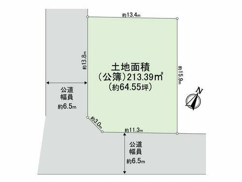 | 接道状況 | 南東 6.5m 公道 接面11.3m南西 6.5m 公道 接面13.8m | ||||