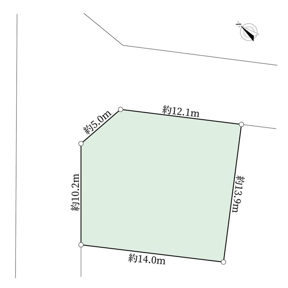 | 建ぺい率・容積率 | 50%・80% | 私道負担・道路 | 無、北西6.5m幅(接道幅10.2m)、北東6.5m幅(接道幅12m) | ||
