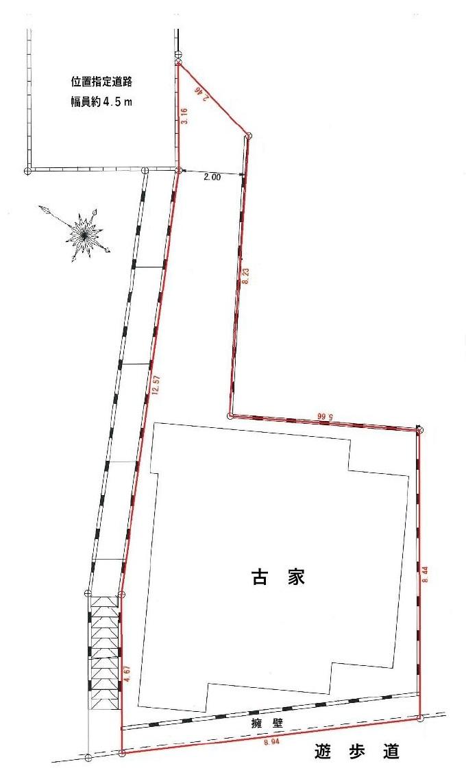 | 建ぺい率・容積率 | 60%・150% | 私道負担・道路 | 15.89㎡、北西4.5m幅(接道幅3.1m) | ||