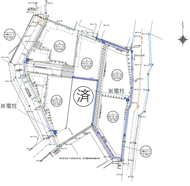 | 建ぺい率・容積率 | 建ペい率:50%、容積率:100% | 私道負担・道路 | 道路幅:4m、アスファルト舗装、セットバック有(8.48㎡~21.05㎡) | ||