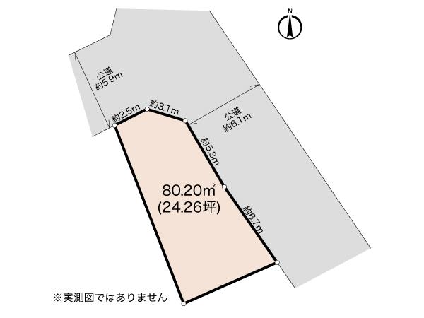 | 建ぺい率・容積率 | 60%・100% | 私道負担・道路 | 無、北東6.1m幅(接道幅12m)、北西5.9m幅(接道幅5.6m) | ||