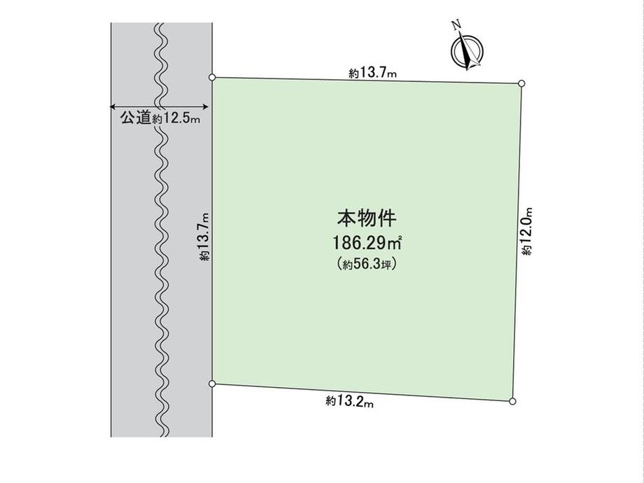 | 建ぺい率・容積率 | 50%・80% | 私道負担・道路 | 無、北西12.5m幅(接道幅13.7m) | ||