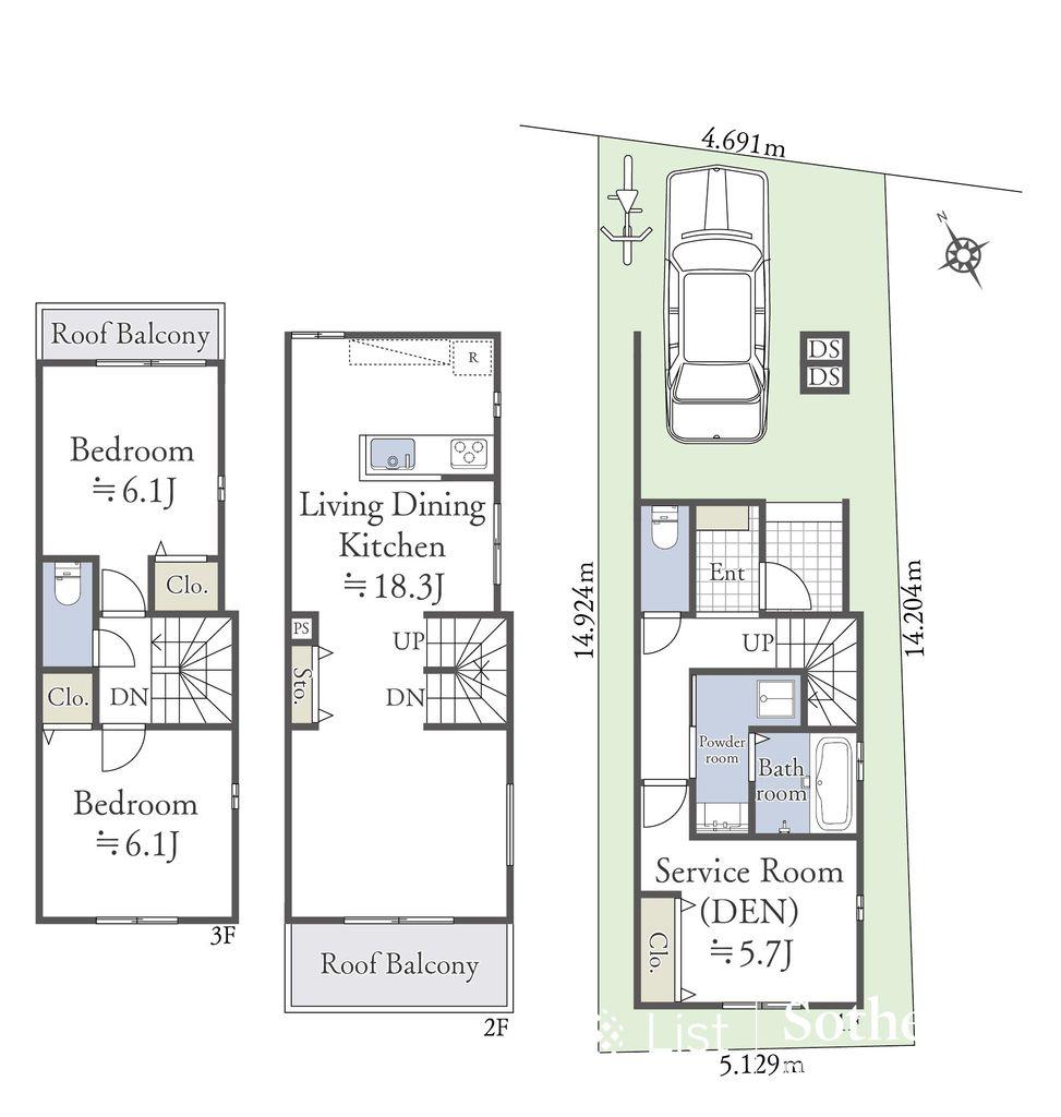 | 建ぺい率・容積率 | 60%・200% | 私道負担・道路 | 無、北東5.4m幅 | ||