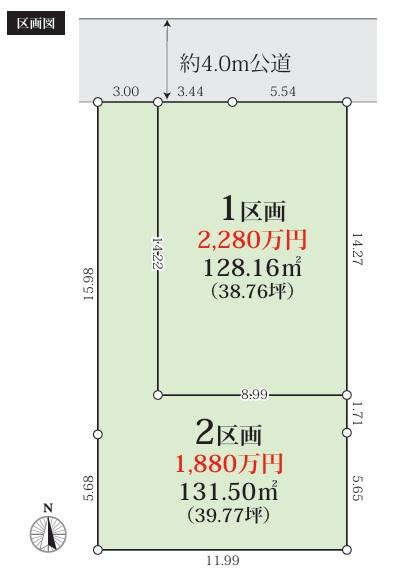 | 建ぺい率・容積率 | 40%・80% | 私道負担・道路 | 無、北4m幅(接道幅8.9m) | ||