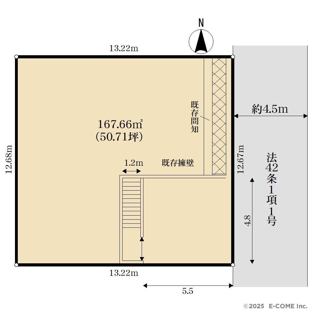 建ぺい率・容積率 | 建ペい率:50%、容積率:100% | 私道負担・道路 | 道路幅:4.5m、アスファルト舗装 | ||