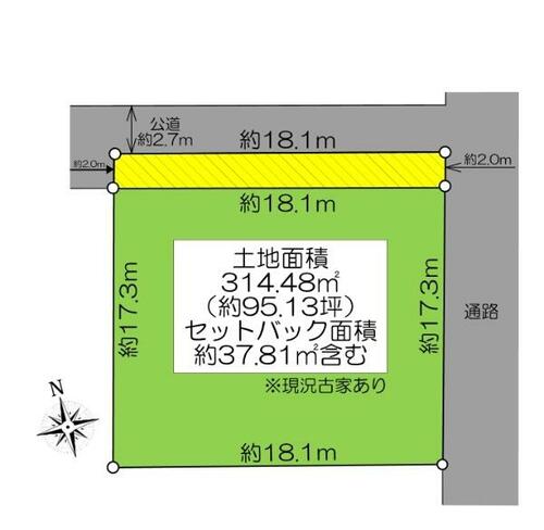 | 備考 | セットバック:有37.81平米・■土地面積:314.48㎡(約95.13坪) 整形地 | ||||