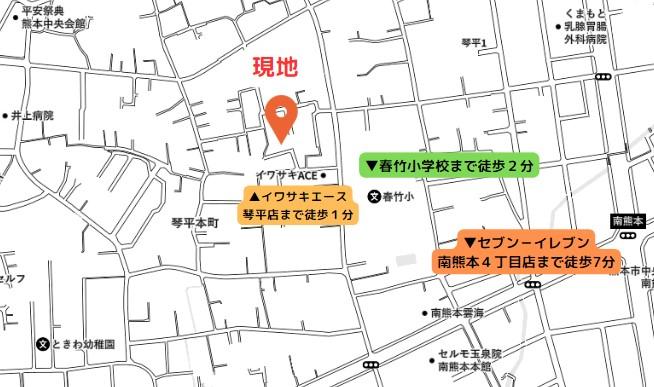 熊本バス「春竹小学校入口」歩5分 JR豊肥本線「南熊本」歩12分 熊本市電健軍線「河原町」歩16分 | ||||