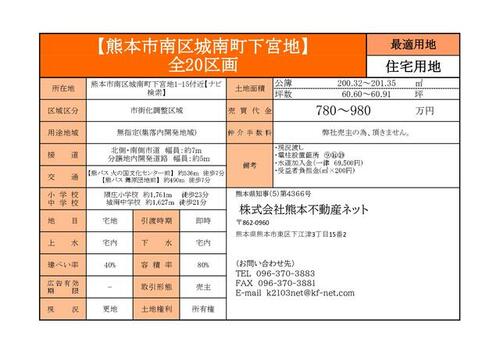 | 物件名 | 熊本県熊本市南区城南町下宮地の売地 | ||||