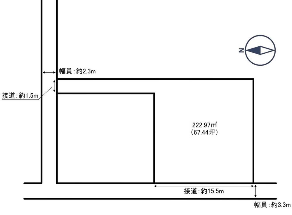 | 建ぺい率・容積率 | 60%・200% | 私道負担・道路 | 無、西3.3m幅(接道幅15.5m)、北2.3m幅(接道幅1.5m) | ||