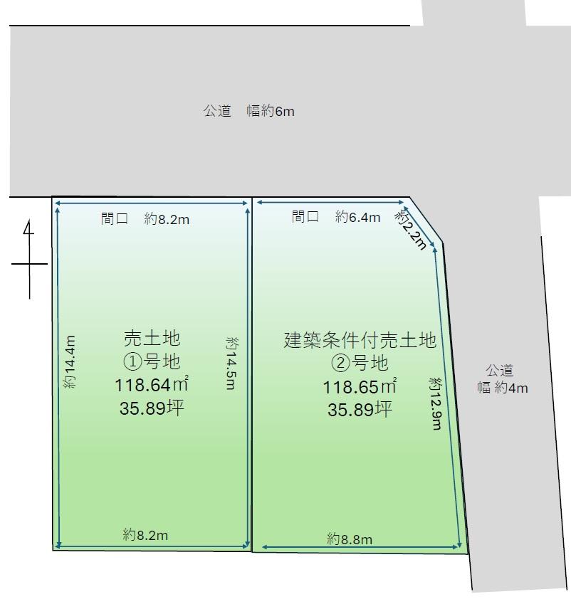 | 備考 | 担当者:東口、設備:電気、上下水及び都市ガス(前面道路本管有、要敷地内引込工事)買主様にて引込工事をお願いいたします。別途費用で弊社にて施工も可能です。、建築条件なし1号地:1880万円、建築条件付2号地:1730万円 | ||||