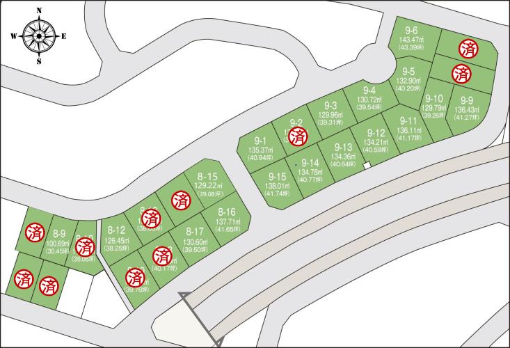 | 建ぺい率・容積率 | 建ぺい率:60%(8-15号地、8-16号地、9-1号地、9-6号地、9-15号地は70%※角地緩和10%適用)/容積率:200% | 私道負担・道路 | 道路幅:6m、アスファルト舗装、私道負担なし | ||
