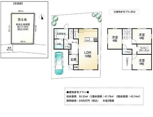 | 備考 | 【建物参考プラン】建物価格:2,420万円(税込) 延床面積:91.53㎡(1階:47.79㎡ 2階:43.74㎡) 構造:木造2階建※間取り図は建物プランの一例、お客様が自由にプラン決定可能※別途費用:外構工事費(※地盤調査により改良が必要な場合、改良工事費)※参考プランのため行政等からの指導により同じプランが建築できない場合があります。※本物件のお取引は、売主指定の行政書士となります。※解体更地渡し・セットバック:有0.6平米・私道負担:あり18.87平米・■奈良線 『JR藤森』 駅まで徒歩9分!! ■建物参考プラン有り!建築条件付き売土地!ご自由にプラン決定できます! | ||||
