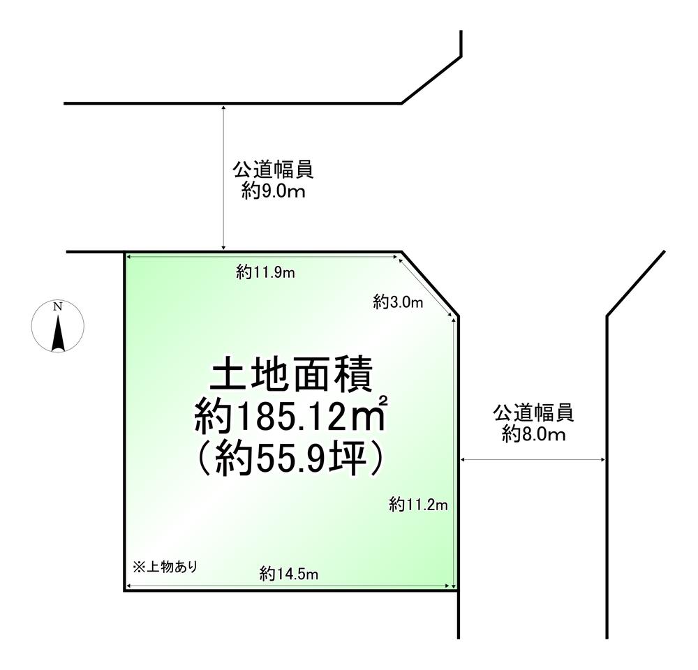 | 建ぺい率・容積率 | 50%・80% | 私道負担・道路 | 無、北9m幅(接道幅11.9m)、東8m幅(接道幅11.2m) | ||