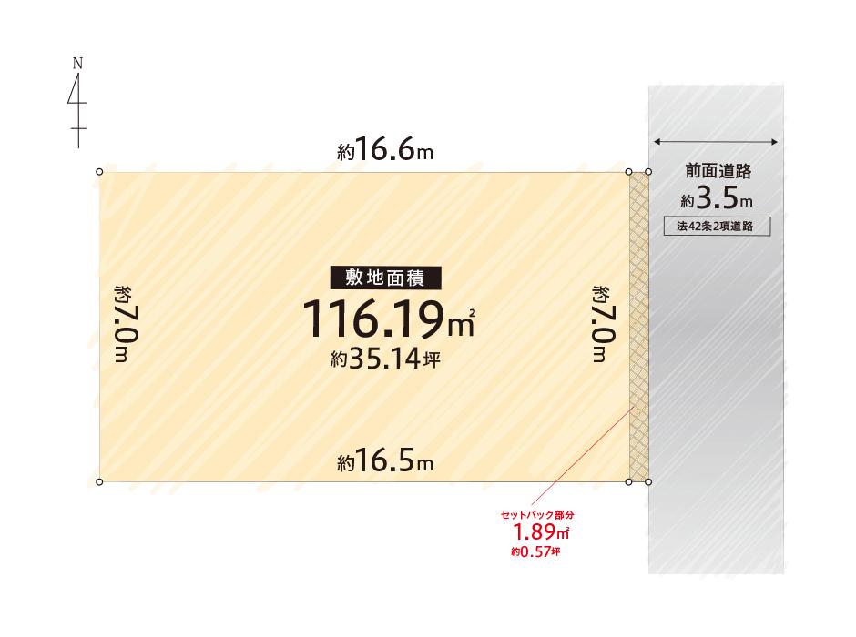 | 建ぺい率・容積率 | 建ペい率:60%、容積率:100% | 私道負担・道路 | 道路幅:3.5m、アスファルト舗装 | ||