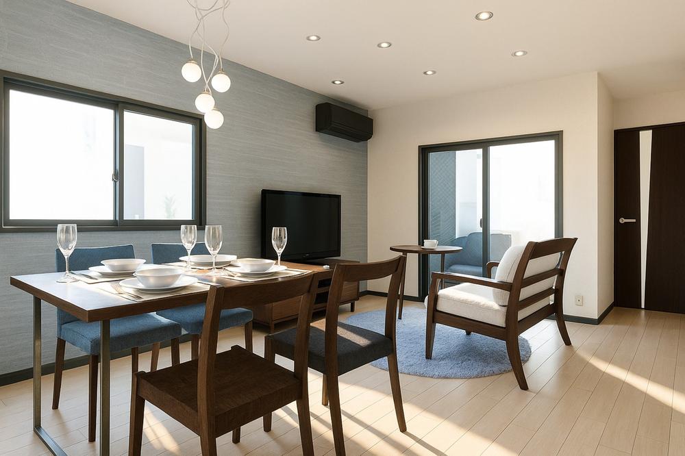 ■17.1帖LDK/イメージパース開放感のある広々リビングに光と風を呼び込みます。収納も多く快適な住空間を実現します。【新築参考プラン】建物価格1699万円、建物面積74.70㎡