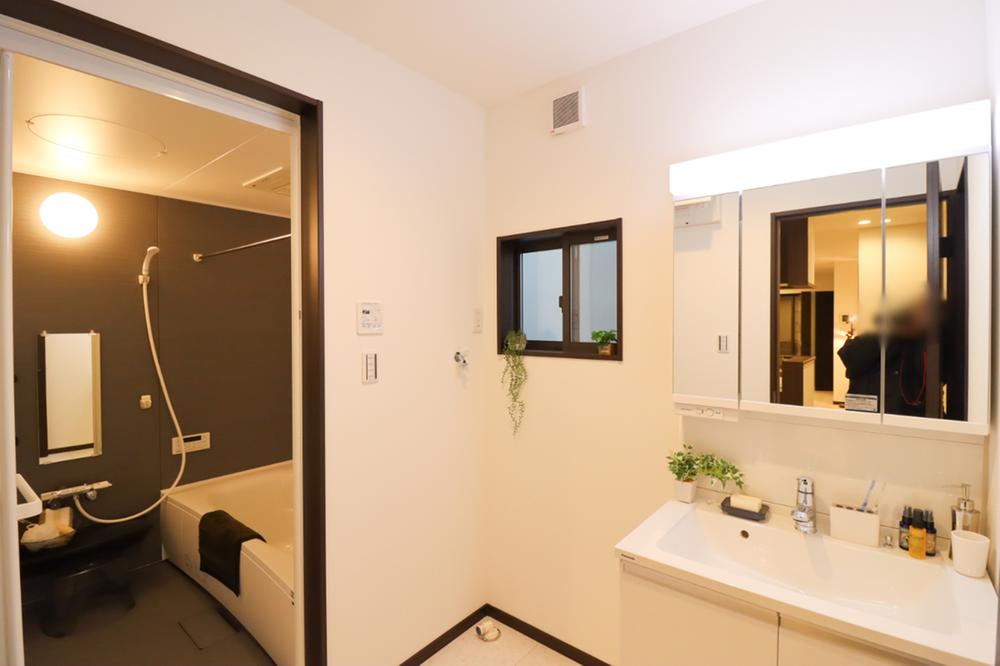 ■ドリームタウン施工例髪のセットやお化粧もストレスなくこなせ、朝から気分良く通勤通学に向かえそう!鏡の裏にはたっぷりと収納スペースを標準装備【建物プラン例】建物価格1599万円・建物面積83.02㎡