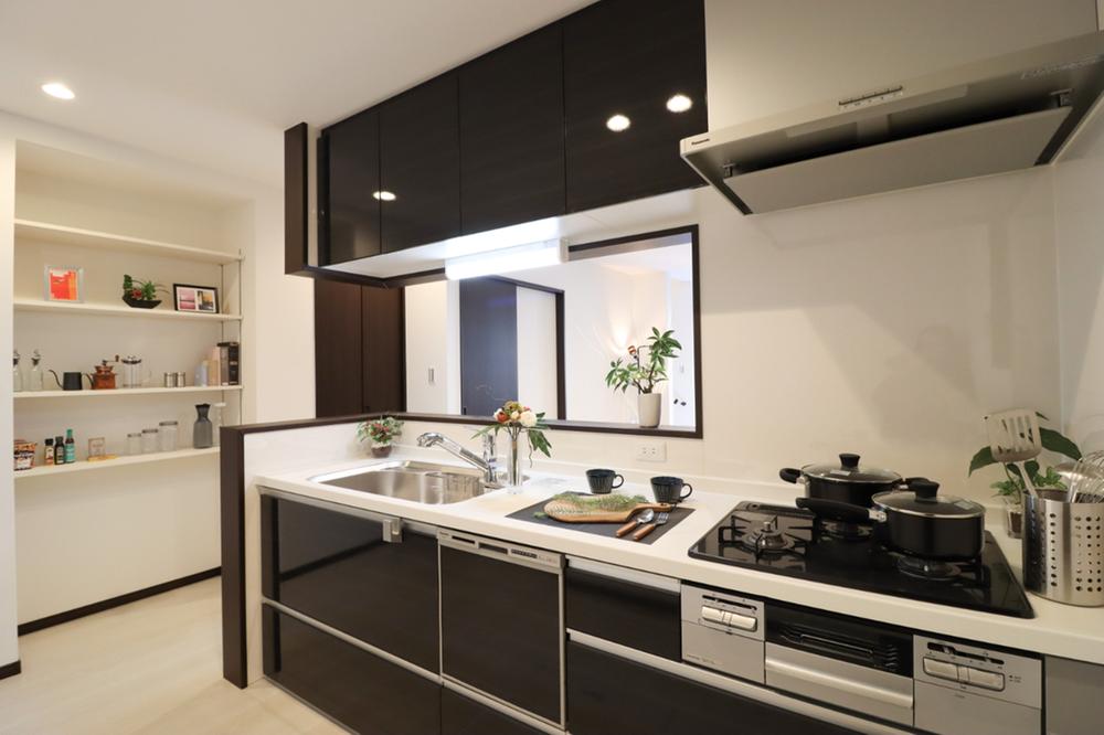 ■ドリームタウン施工例食洗器付きのシステムキッチン!3つ口コンロ&グリルもついているので、汁物、焼き物など同時に作業できて家事がはかどります【建物プラン例】建物価格1599万円・建物面積83.02㎡
