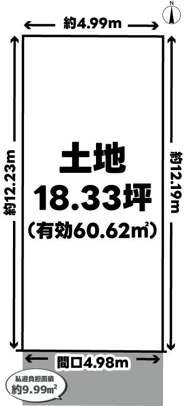 | 建ぺい率・容積率 | 60%・160% | 私道負担・道路 | 9.99㎡、南3.7m幅(接道幅4.9m) | ||