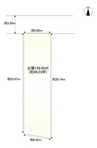 | 接道状況 | 北 3.3m 私道 接面5.9m | ||||