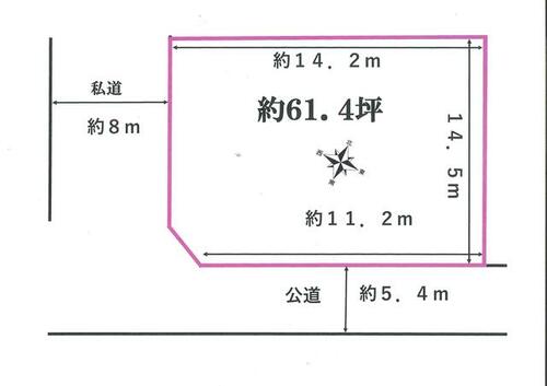 | 接道状況 | 南 5.4m 公道 接面11.2m西 4.2m 私道 接面14.5m | ||||