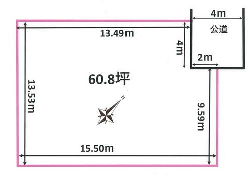 | 接道状況 | 北 4.0m 公道 接面4.0m北東 4.0m 公道 接面2.0m | ||||