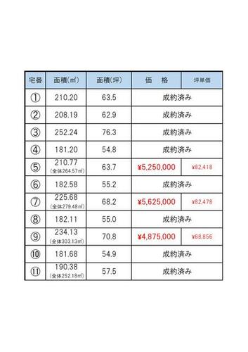 | 最多価格帯 | - | 販売区画数/総区画数 | -/- | ||