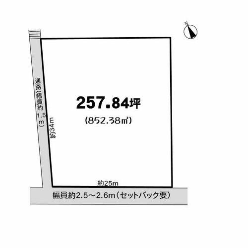 | 接道状況 | 南 2.5m 接面25.0m西 1.5m 接面34.0m | ||||