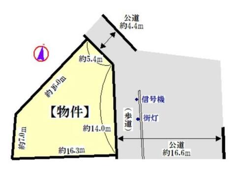 | 接道状況 | 北東 4.4m 公道 接面5.4m東 16.6m 公道 接面14.0m | ||||