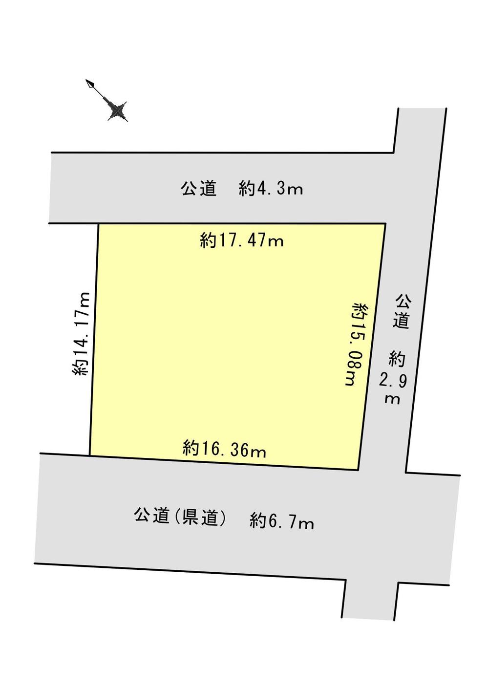 建ぺい率・容積率 | 60%・200% | 私道負担・道路 | 無、北東4.3m幅(接道幅17.4m)、南東2.9m幅(接道幅15m)、南西6.7m幅(接道幅16.3m) | ||