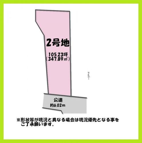 | 備考 | 《約105坪!》*☆注文住宅が建てられる建築条件無土地♪◇お好きなハウスメーカー・工務店で自由設計が可能♪◇内装スタイルや設備・仕様もお選びいただけます♪◇嬉しい!更地渡し&公営水道完備♪ / 条件等:更地渡し | ||||