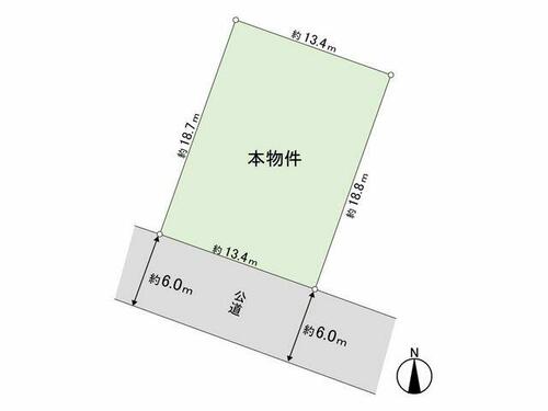 | 接道状況 | 南西 6.0m 公道 接面13.4m | ||||
