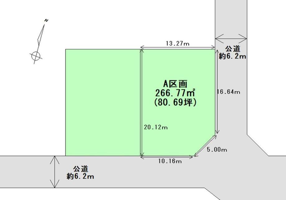 | 建ぺい率・容積率 | 40%・60% | 私道負担・道路 | 無、東6.2m幅(接道幅16.6m)、南6.2m幅(接道幅10.6m) | ||