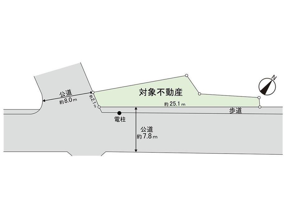 | 建ぺい率・容積率 | 60%・200% | 私道負担・道路 | 無、南東7.8m幅(接道幅25.1m)、南西8m幅(接道幅2.1m) | ||