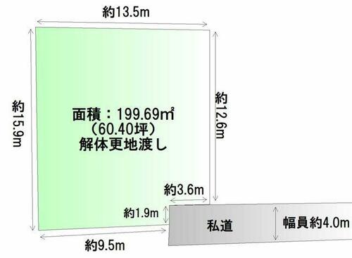 | 接道状況 | 南 4.0m 私道 接面3.6m | ||||