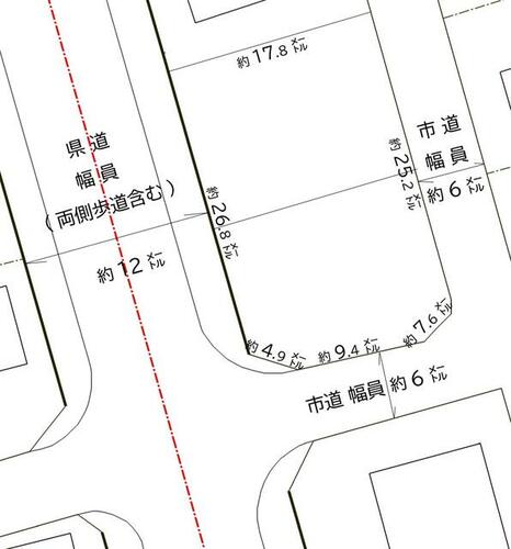 | 接道状況 | 東 6.0m 公道 接面25.2m南 6.0m 公道 接面9.4m西 16.0m 公道 接面26.8m | ||||