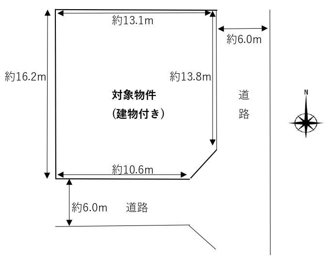 | 建ぺい率・容積率 | 60%・200% | 私道負担・道路 | 無、南6m幅(接道幅10.6m)、東6m幅(接道幅13.8m) | ||