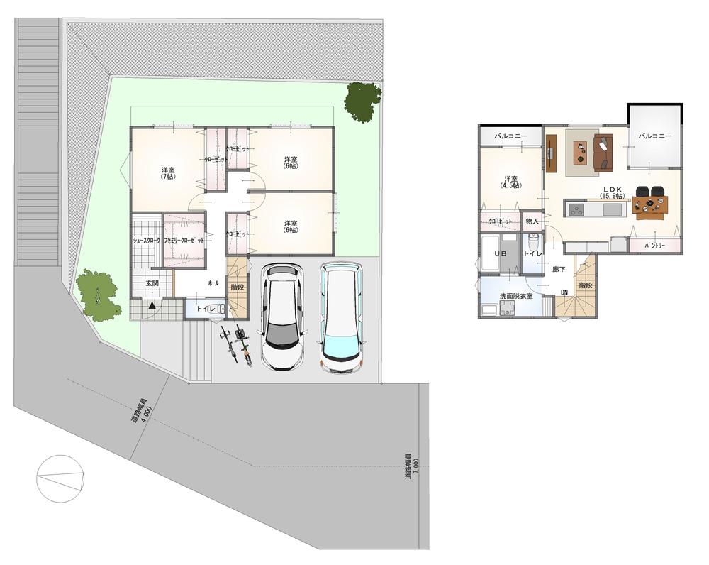 | 建ぺい率・容積率 | 40%・60% | 私道負担・道路 | 無、西4m幅、北2m幅 | ||