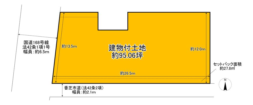 | 建ぺい率・容積率 | 60%・200% | 私道負担・道路 | 無、南2.1m幅(接道幅26.5m)、西6.5m幅(接道幅13.5m) | ||